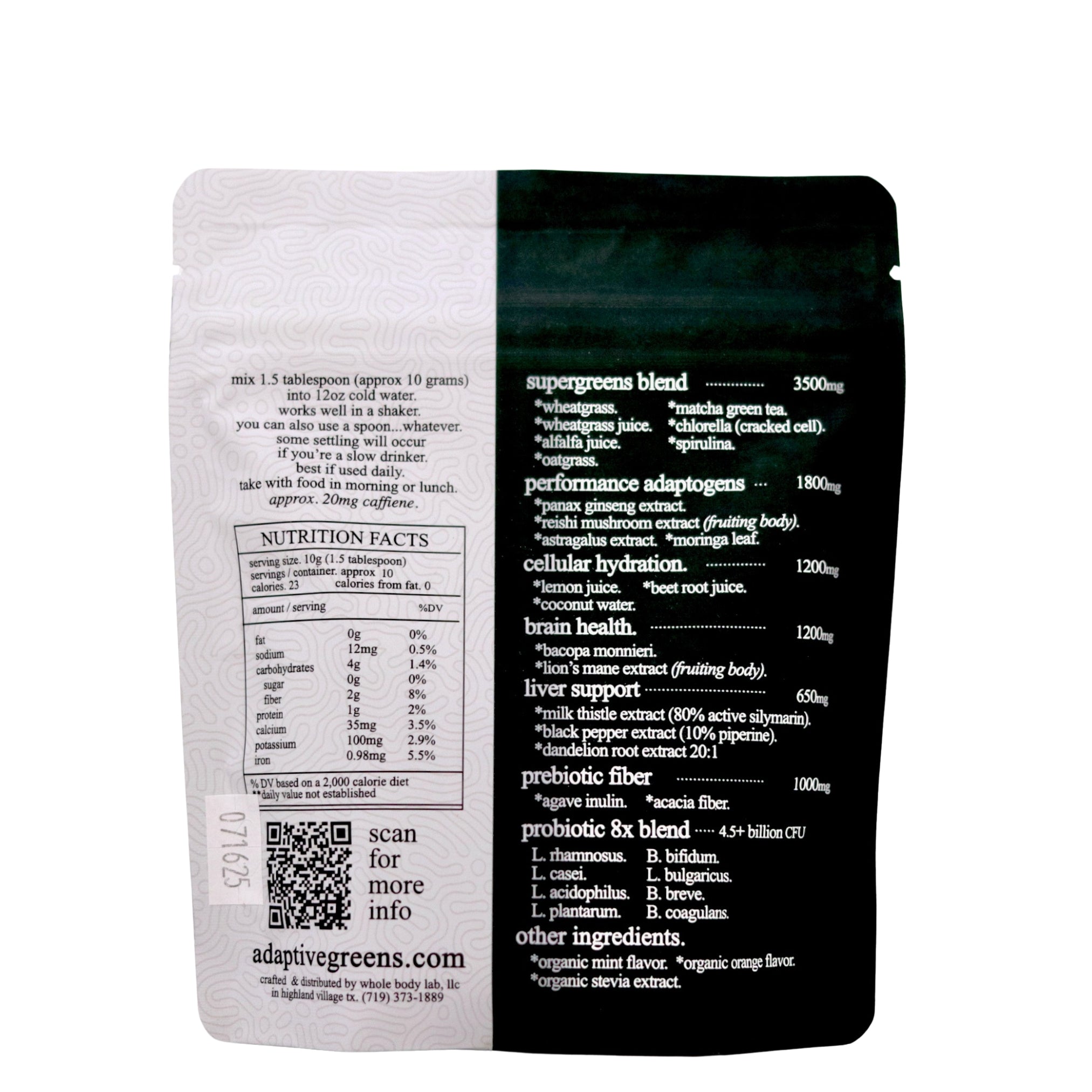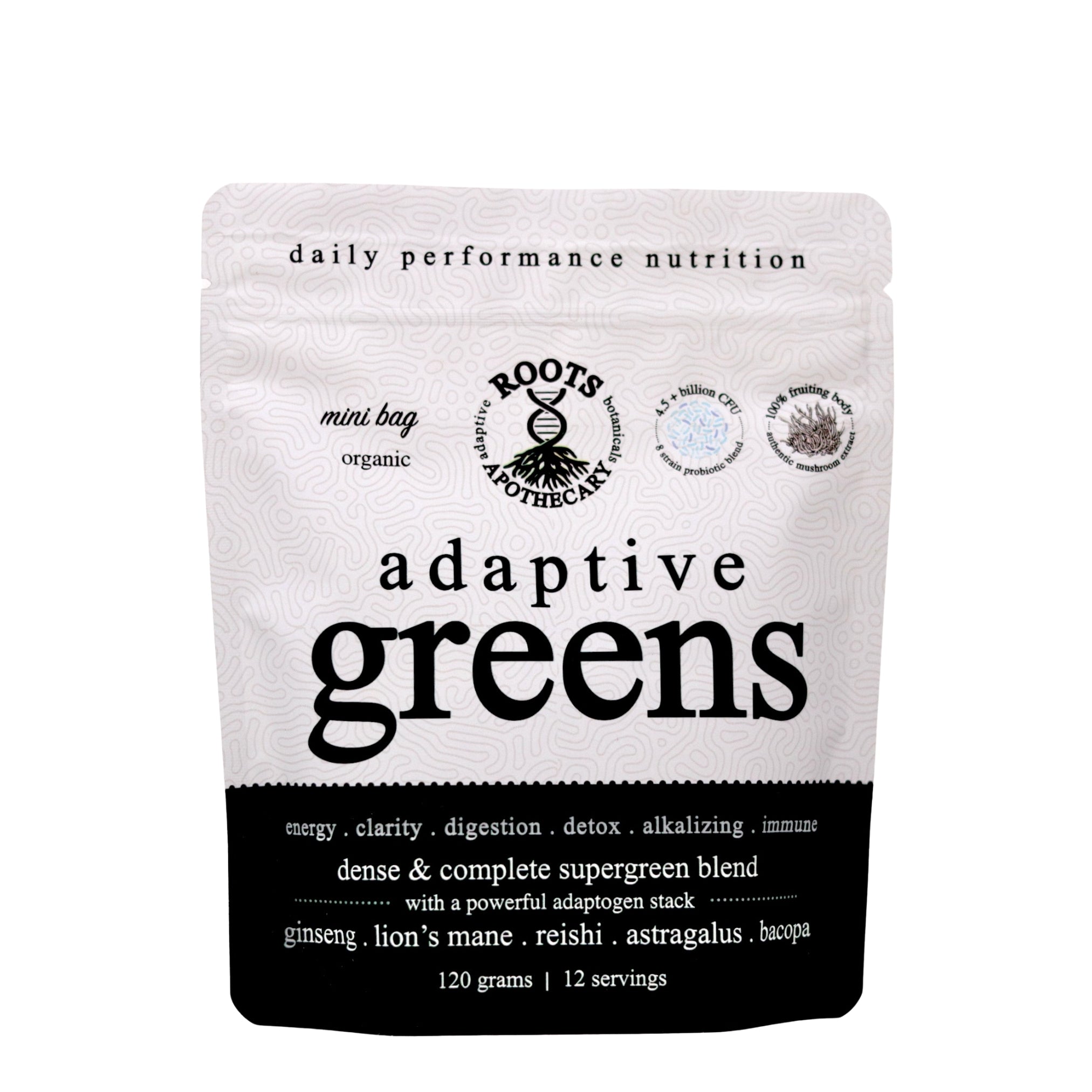 adaptogens are becoming more popular as the importance of nervous system health and stress resilience is increasingly recognized across all areas of health, wellness and performance. our products deliver serving sizes of adaptogens that are well into therpeutic range. as adaptogen populatiry continues to grow, more products will start to put adaptogens on their label for marketing buzz without delivering powerful serving sizes of quality extracts or even using real adaptogens at all. Roots Apothecary is built around a functionfirst mentality and ingredient decks that go far beyond the industry trend. the adaptive greens delivers 3000mg of real adaptogens / serving (performance adaptogens + brain health ingredient categories below).