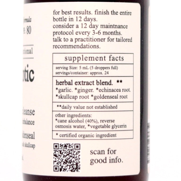 periodically using the roots-biotic tincture can help clear latent infections to help improve energy, mental clarity, baseline inflammaiton and immune function. the roots biotic tincture is a great product to run alongside any health, wellness or performance protocol.